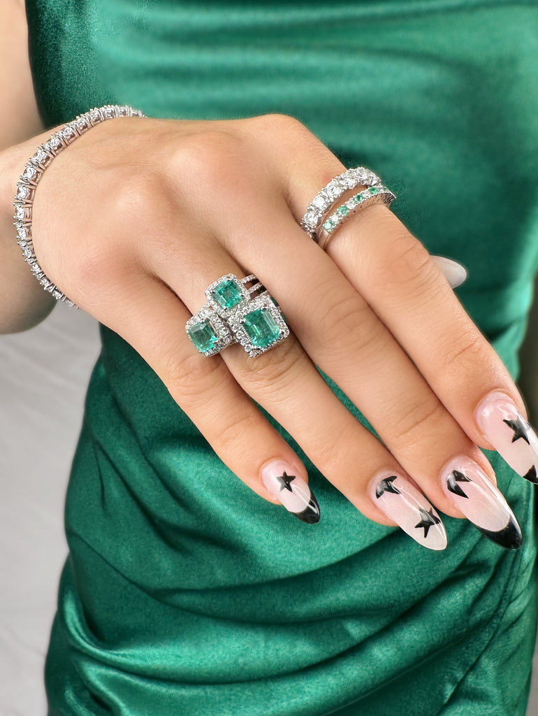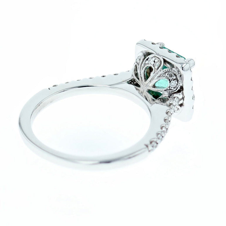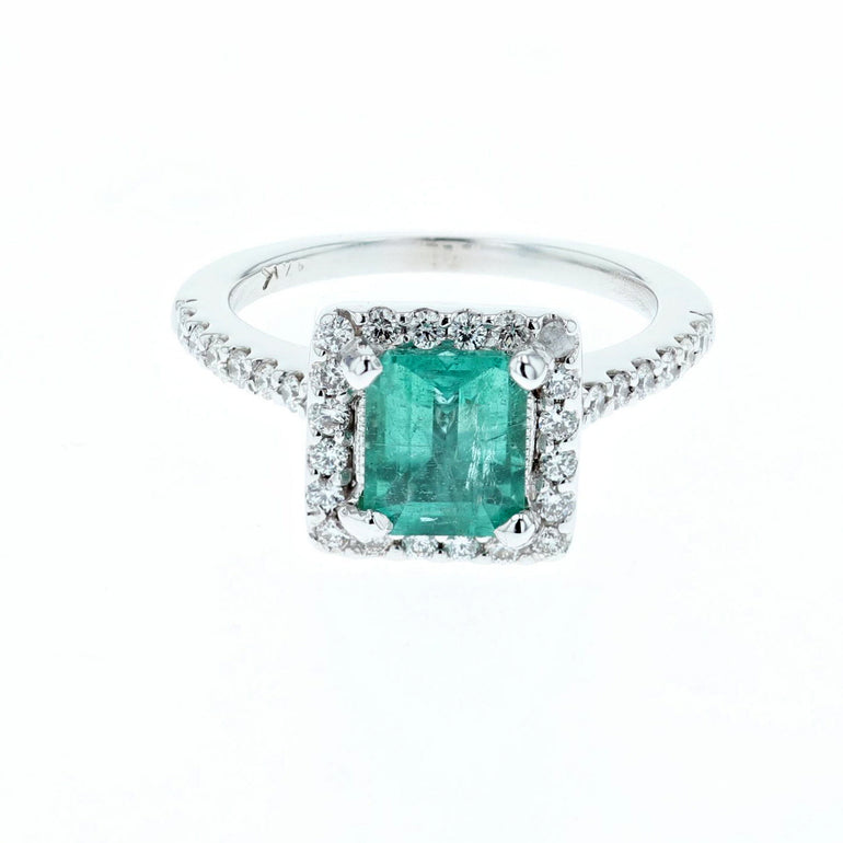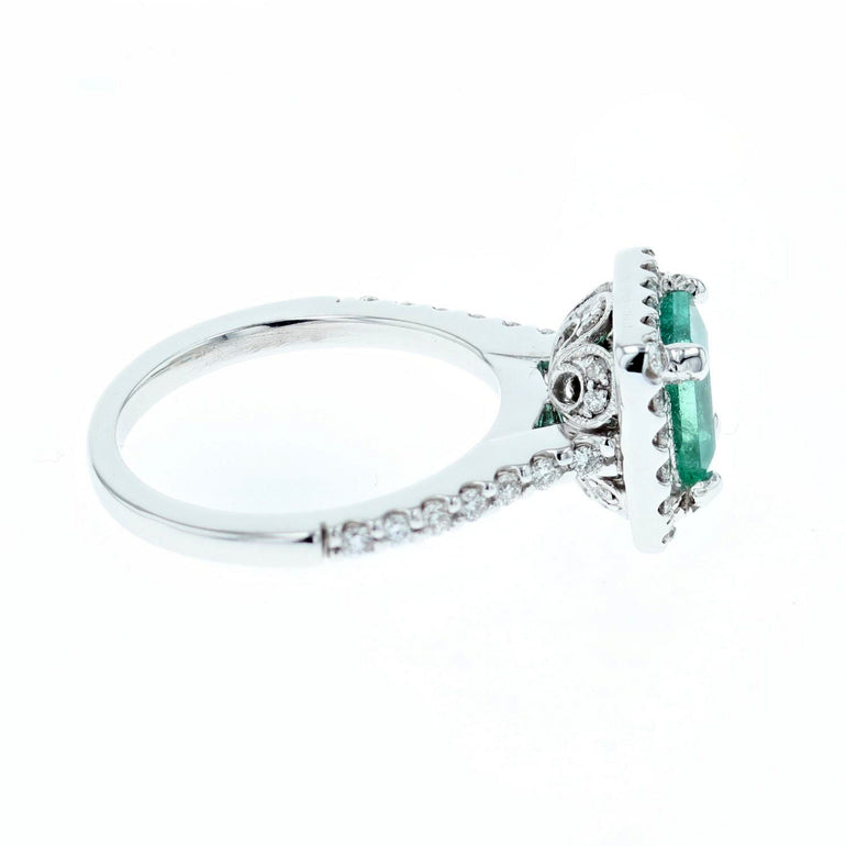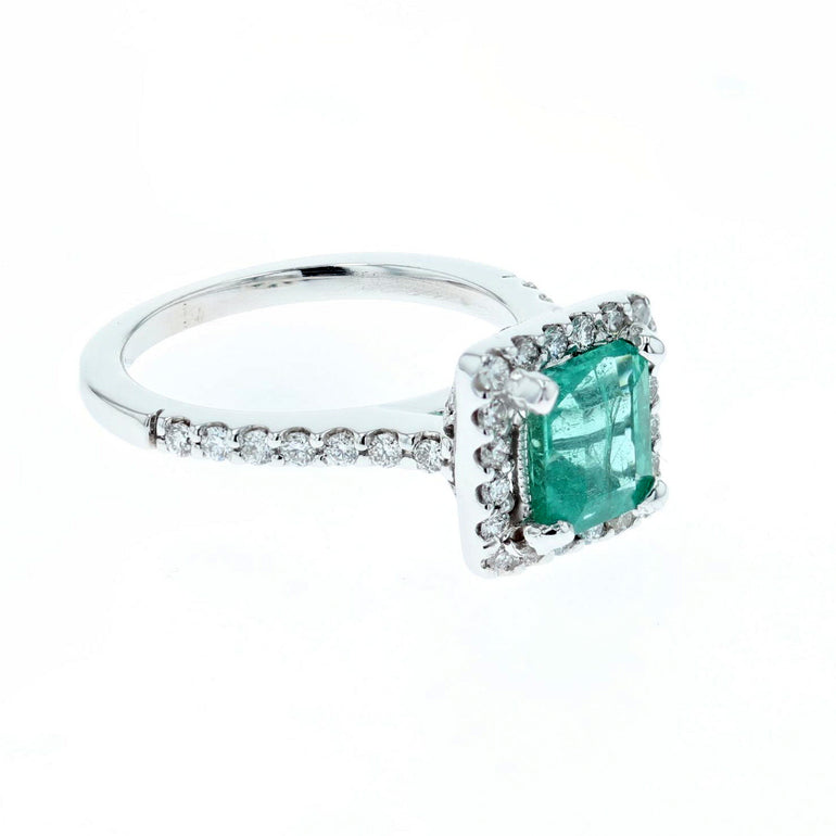 Expertly crafted, this 1.5ct emerald ring in 14k white gold showcases a stunning 1.5ct emerald and sparkling 0.60ct/tw diamonds of SI clarity and G color. A luxurious addition to any jewelry collection, this ring exudes elegance and sophistication.