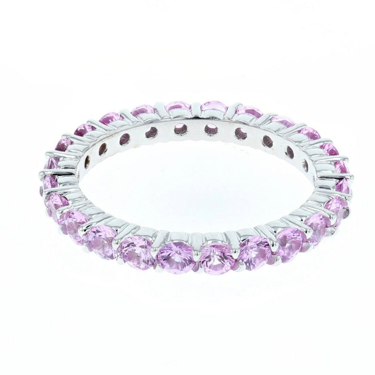 The 14K white gold pink sapphire eternity band is the perfect and most luxurious way to add sparkle to your look. Crafted from 14K gold, this ring sports an exquisite arrangement of pink sapphires for that perfect touch of elegance. perfect for stacking.