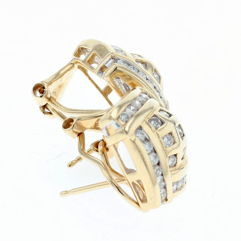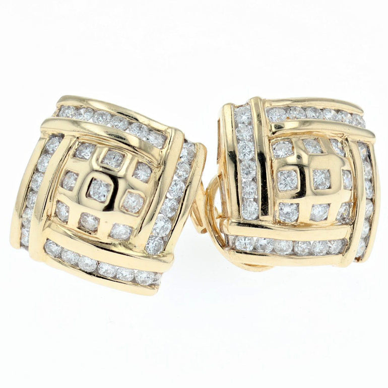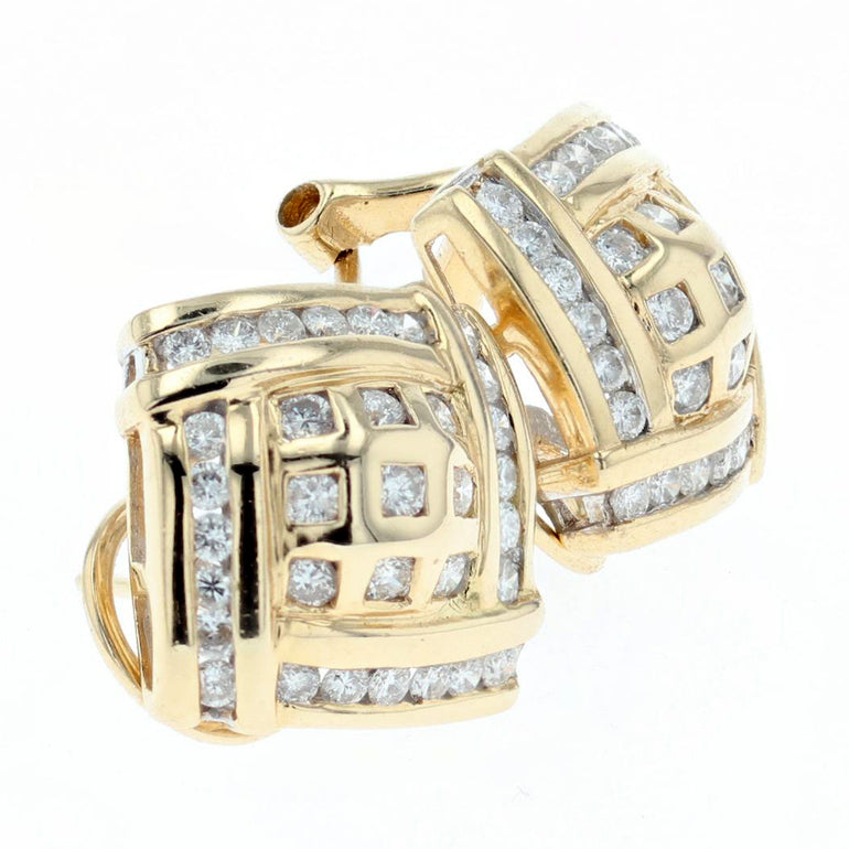 These stunning 14K yellow gold square earrings are handcrafted with 1ct/tw of brilliant cut diamonds with SI clarity and G-H color. Secured with post and omega backings, these earrings will add an elegant sparkle to any outfit.