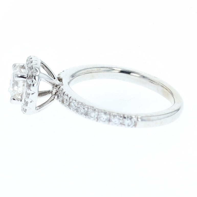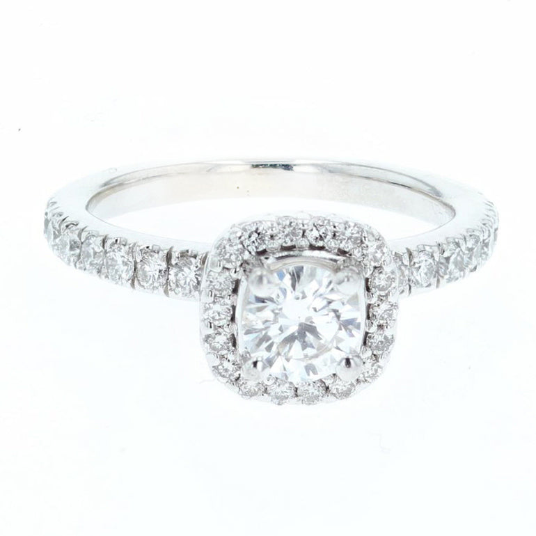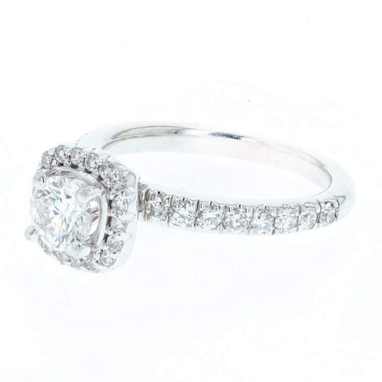 0.5ct Brilliant cut diamond in the center SI1 clarity G color, 0.50ct/tw surrounding diamonds VS clarity G color. 14K white gold ring.