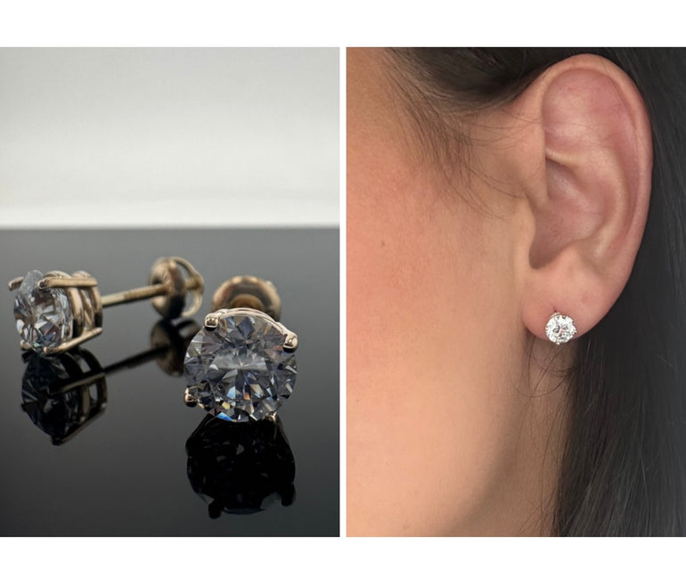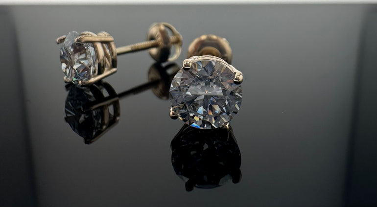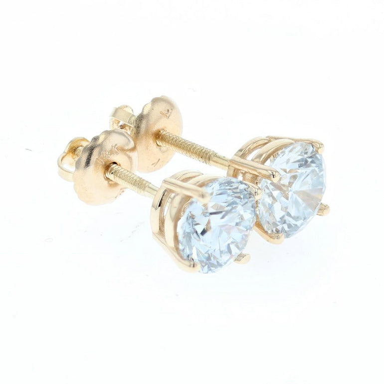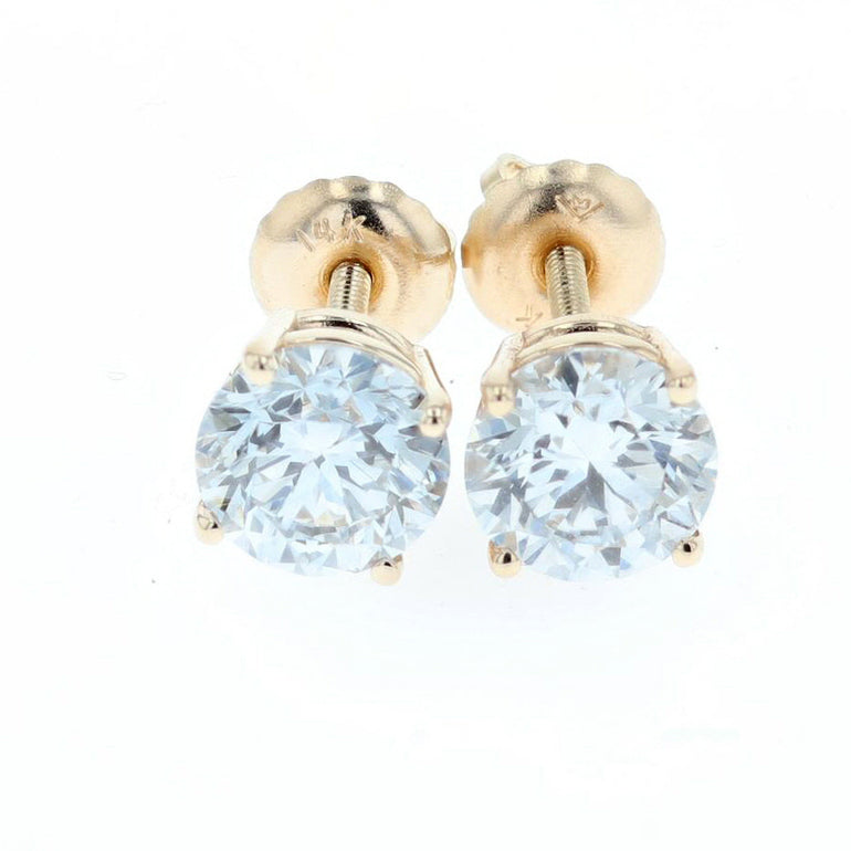 These 2.09ct/tw lab grown diamond stud earrings bring striking clarity and sparkle. Their VVS2 clarity and D color guarantee an exquisite shine in 14k yellow gold screw back settings. Triple Excellent certification ensures superior cut, polish and symmetry for maximum brilliance.