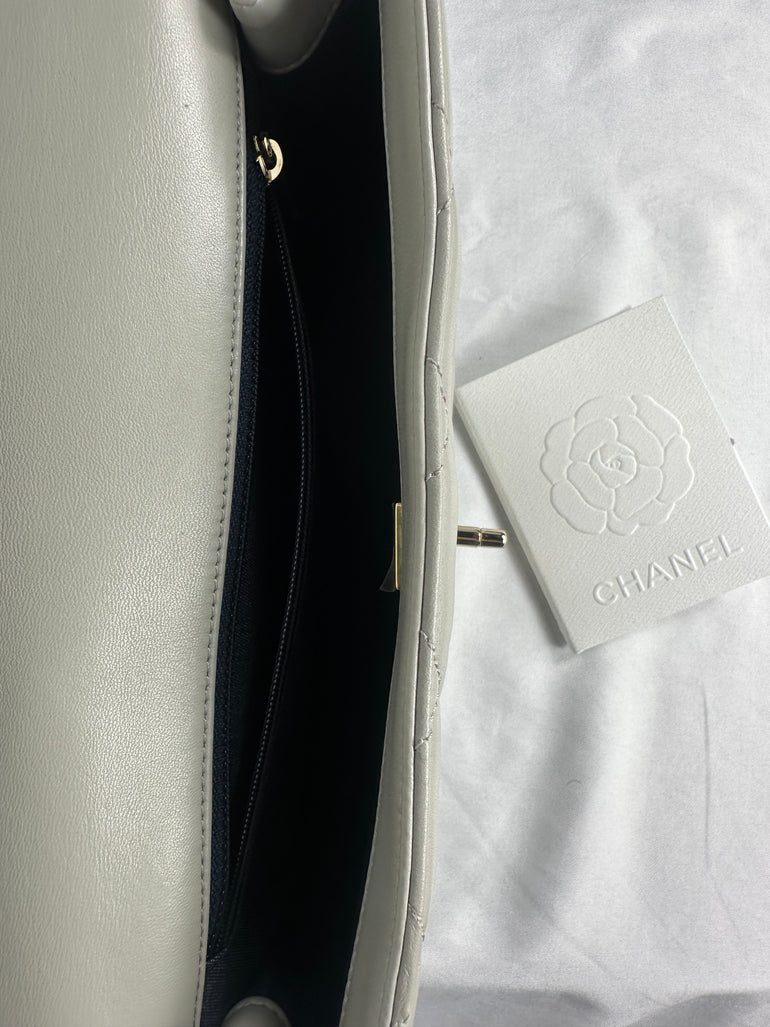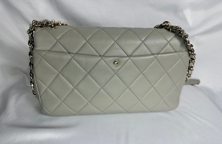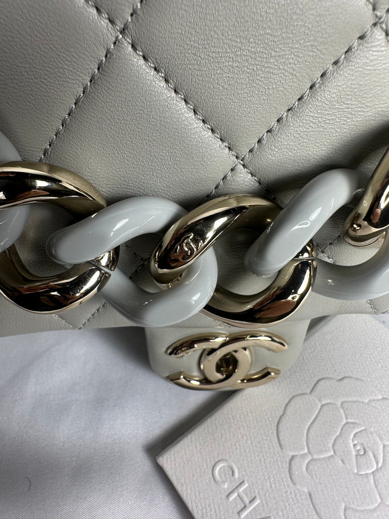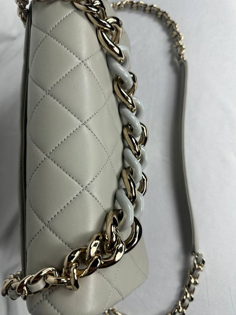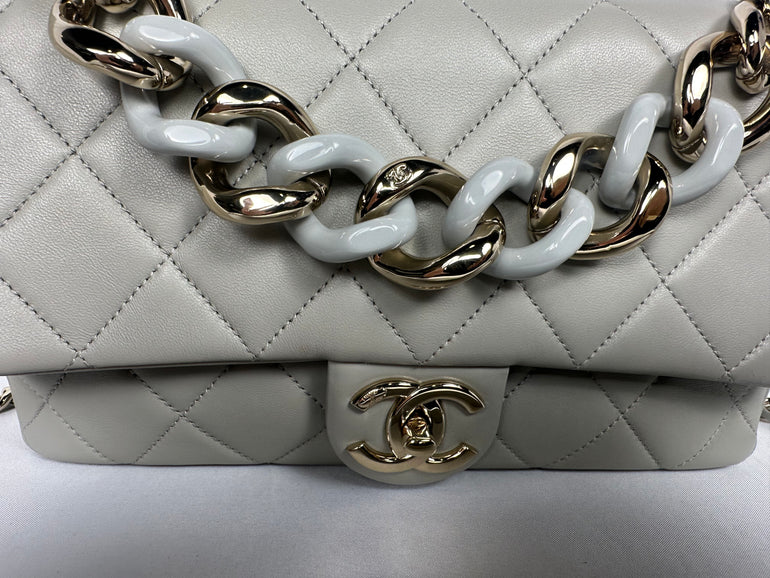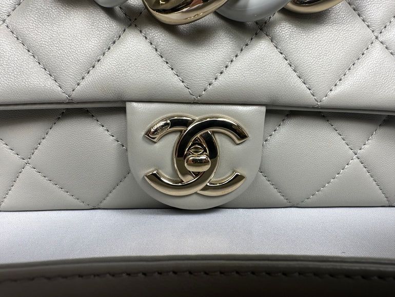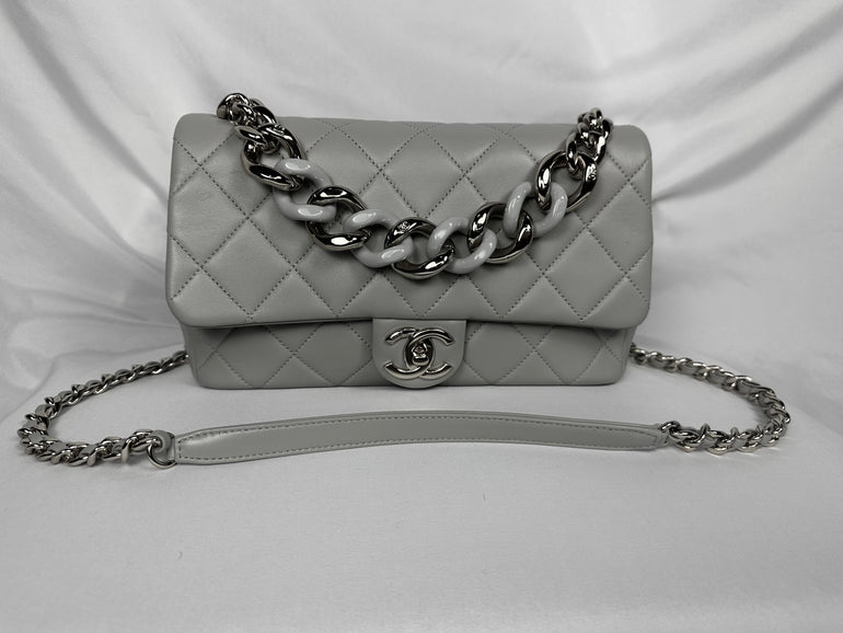 CHANEL Medium Flap In grey Quilted Lambskin Leather With Resin Bi-Colour Chain