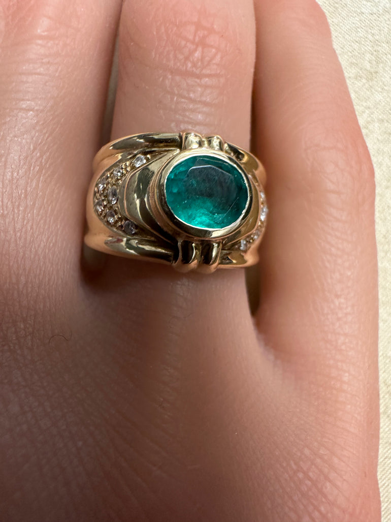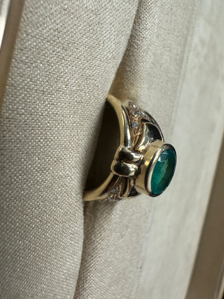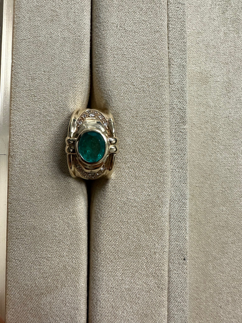 Expertly crafted with a stunning 18k 1.50 ct natural emerald and 0.25ct tw diamonds in si G clarity, this 8.2g piece exudes beauty and sophistication. The natural emerald and sparkling diamonds make this a timeless addition to any jewelry collection.