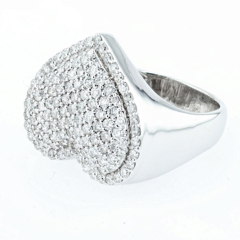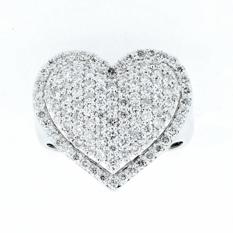 Pave heart Diamond ring 14k white gold