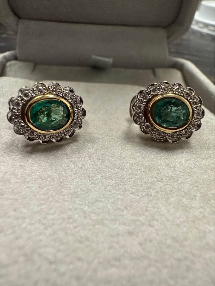 18K gold natural diamond and emerald earrings.